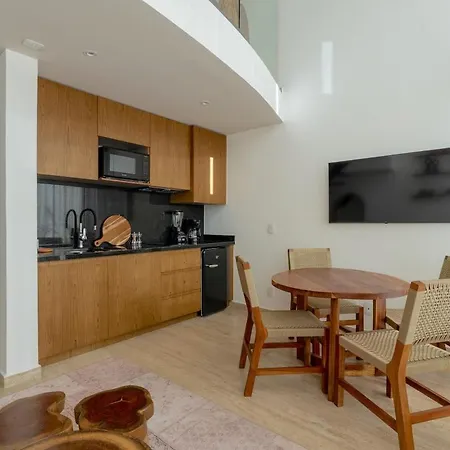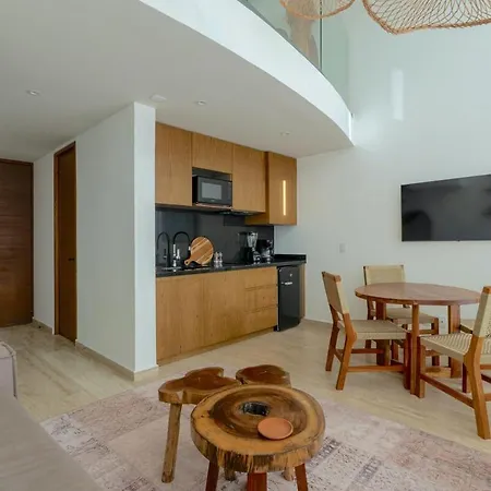 The 54 m² Jungle Loft Mistiq Garden 2 -Skypool -Gym -Beach Tulum apartment is located 2.1 km from Tulum Beach and around 10 minutes by car from the Las Pinturas archaeological site. Guests can lounge by a rooftop pool before taking a cooling dip.